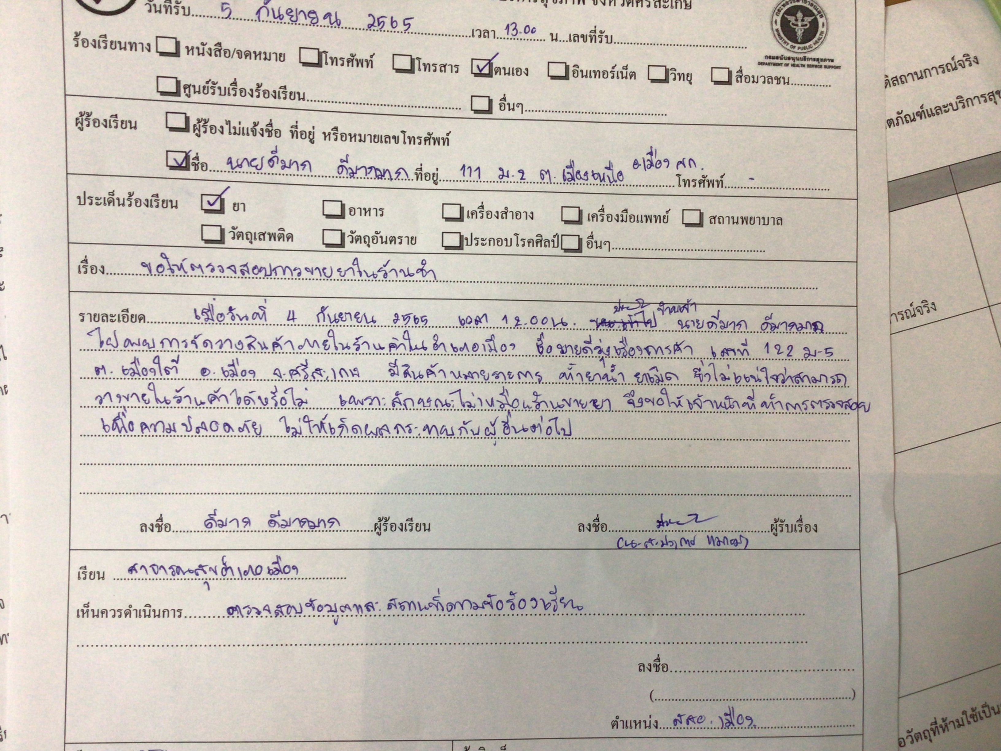 เรียน หัวหน้ากลุ่มงานคุ้มครองผู้บริโภคและเภสัชสาธารณสุขจังหวัดศรีษะ |
