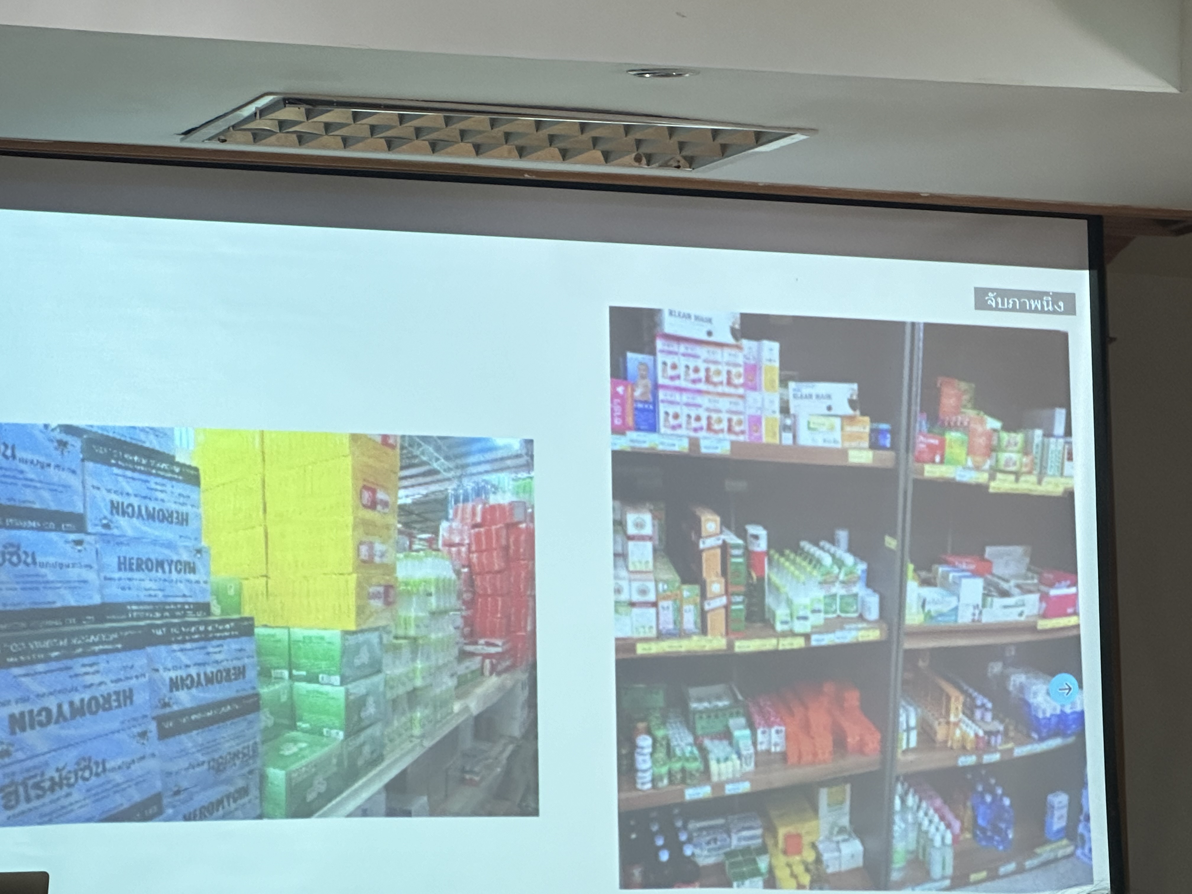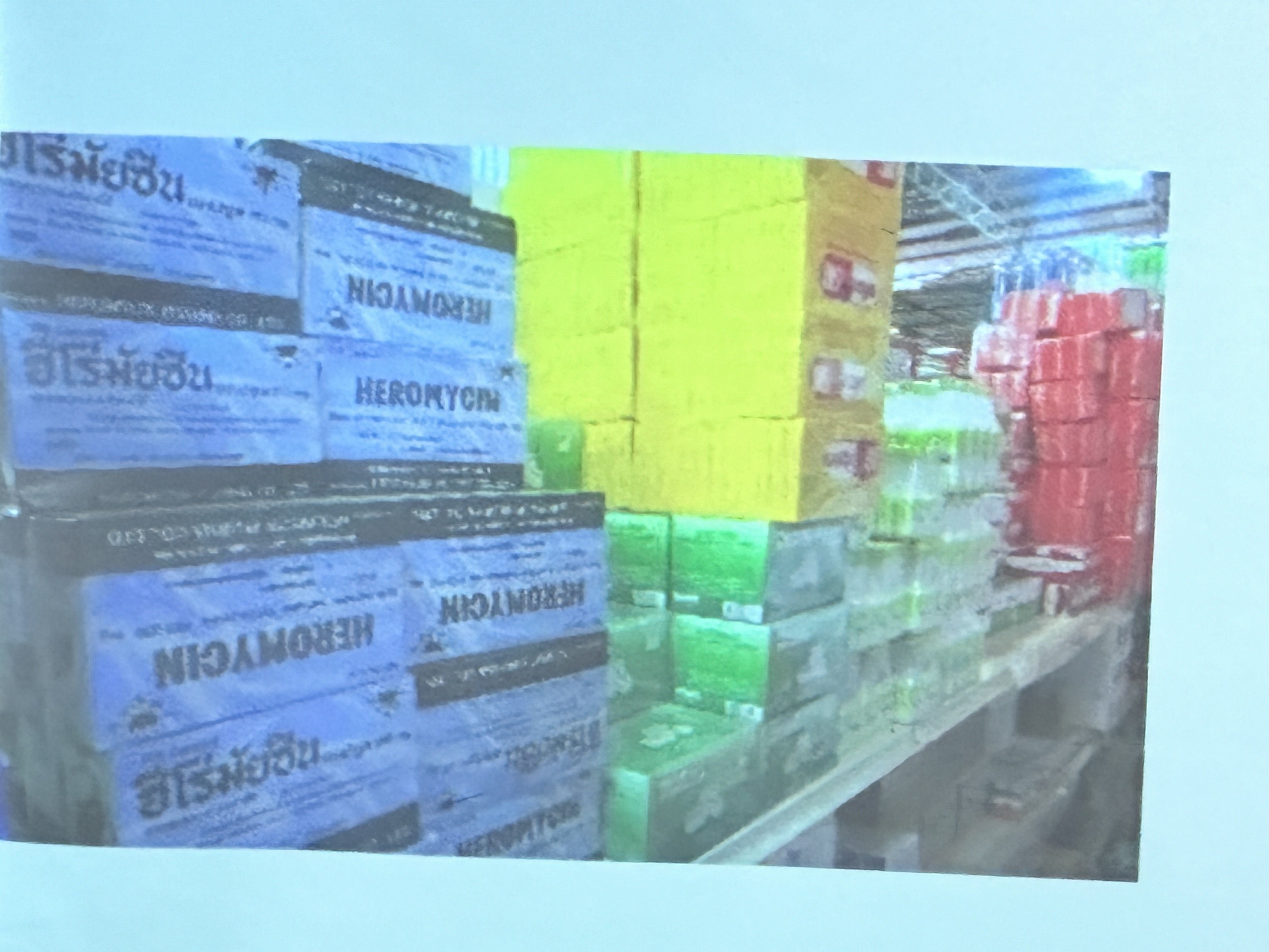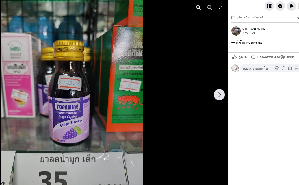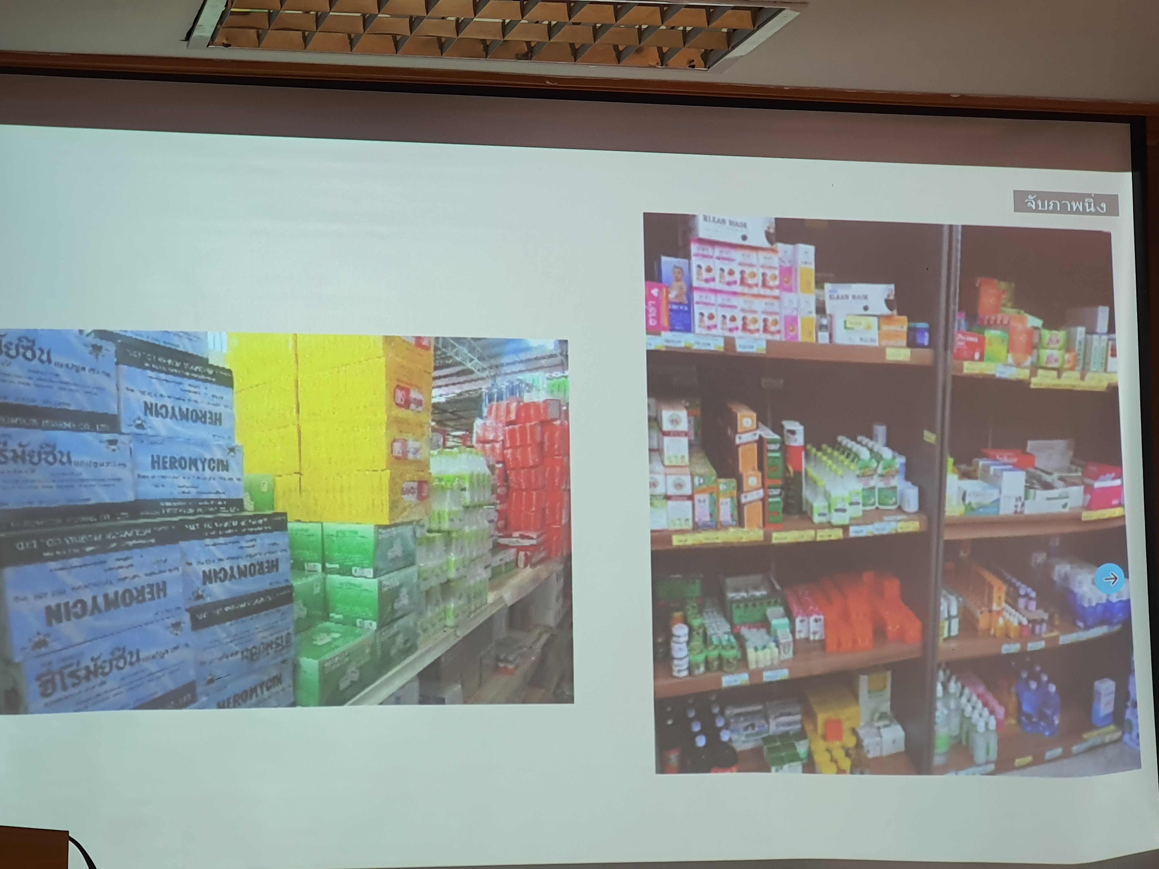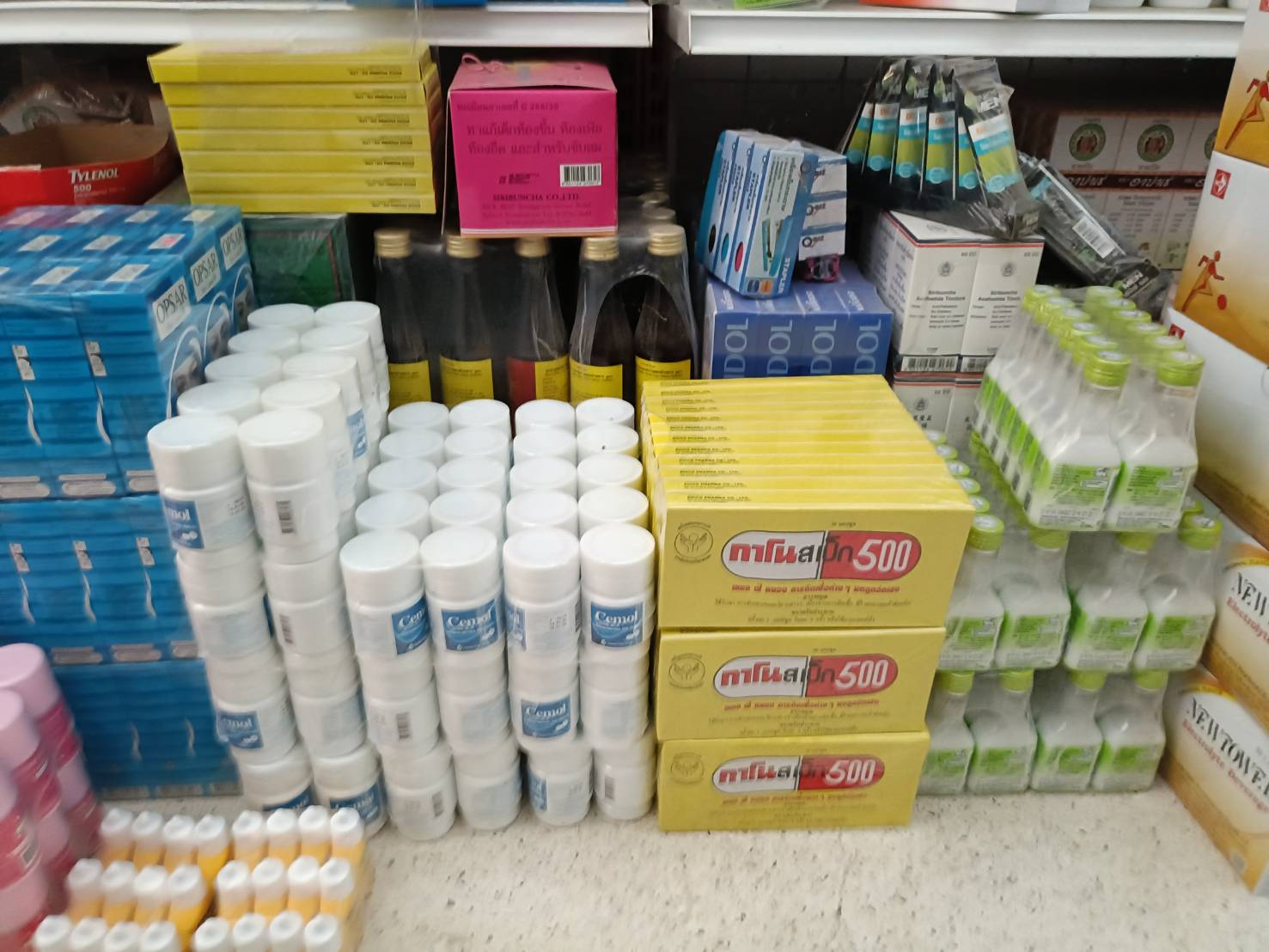 พบยาน้ำ ยาเม็ดจัดวางลักษณะร้านขายยา ร้านค้าชื่อขายดีรุ่งเรืองการค้า |