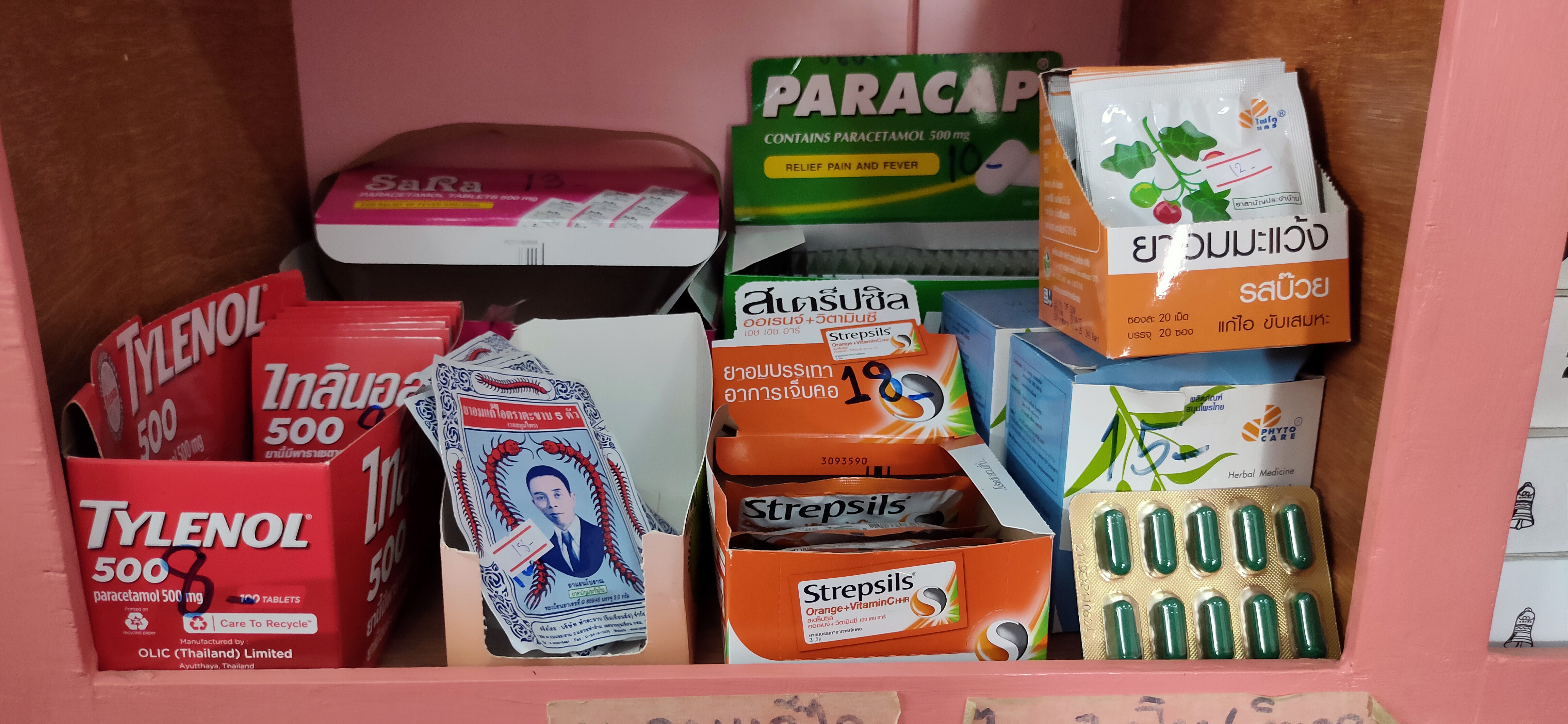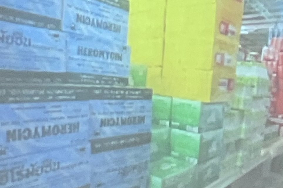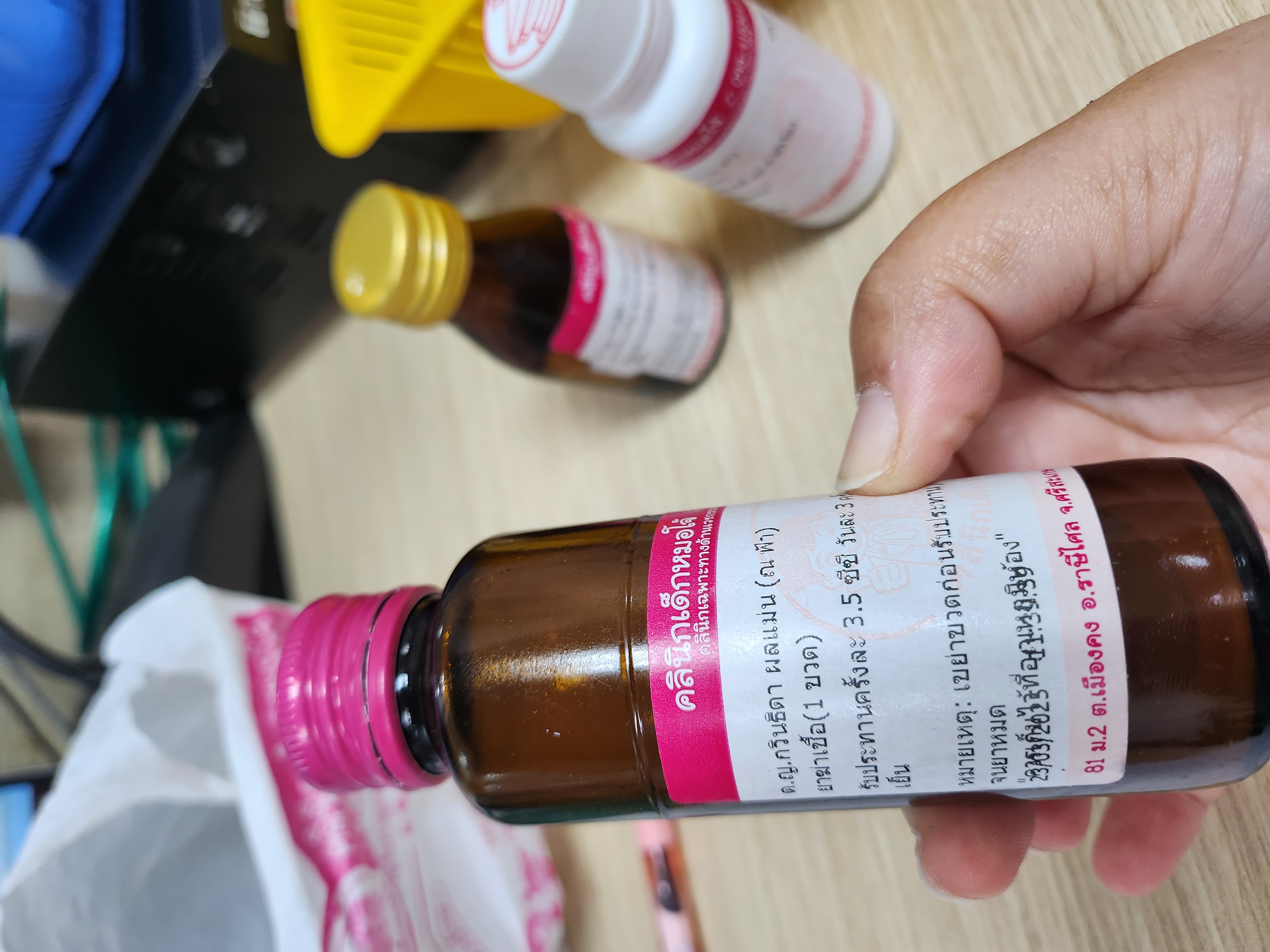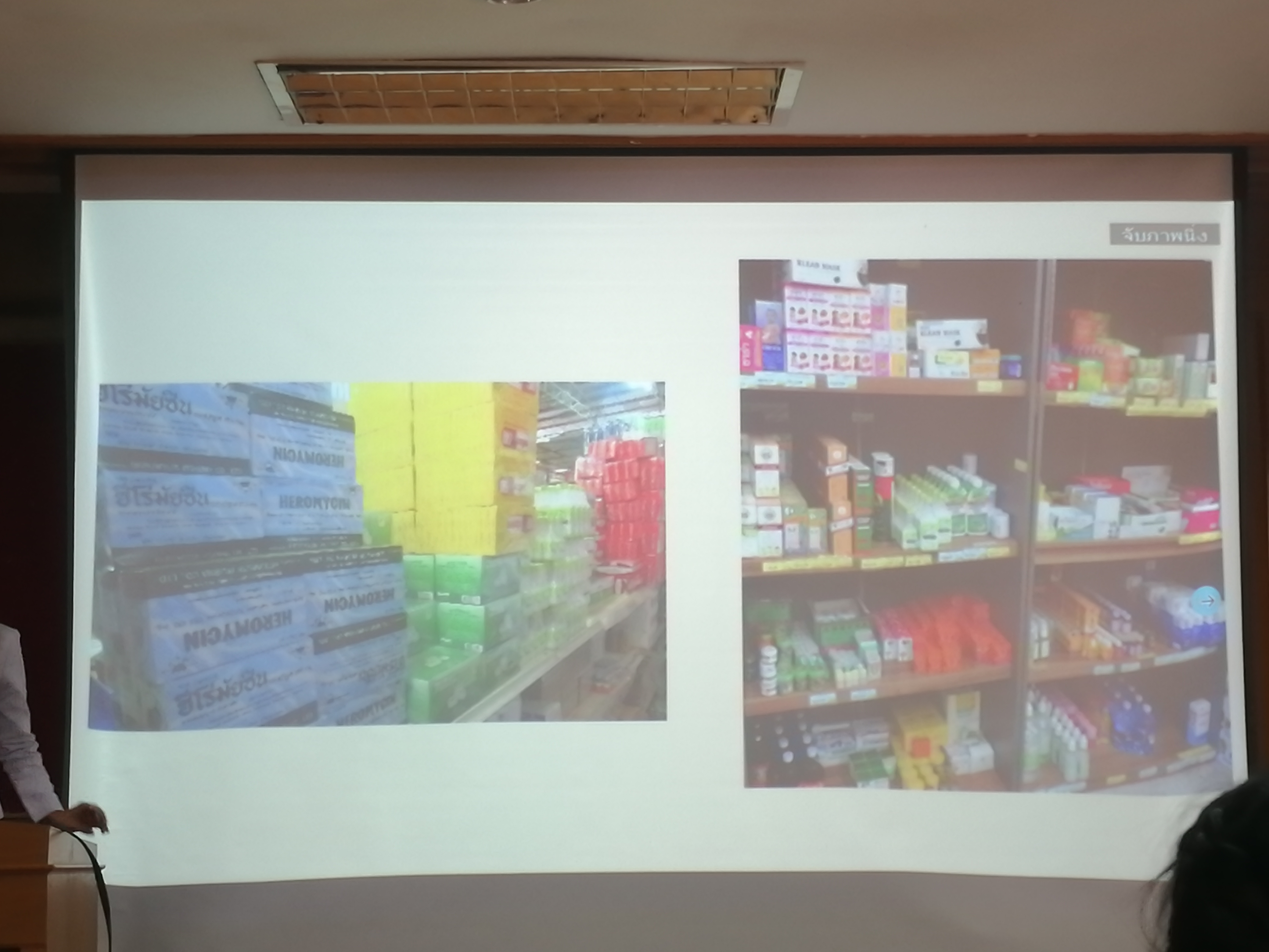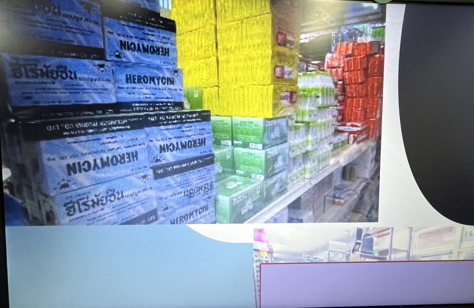 พบยาน้ำ ยาเม็ดจัดวางลักษณะร้านขายยา ร้านค้าชื่อขายดีรุ่งเรืองการค้า |