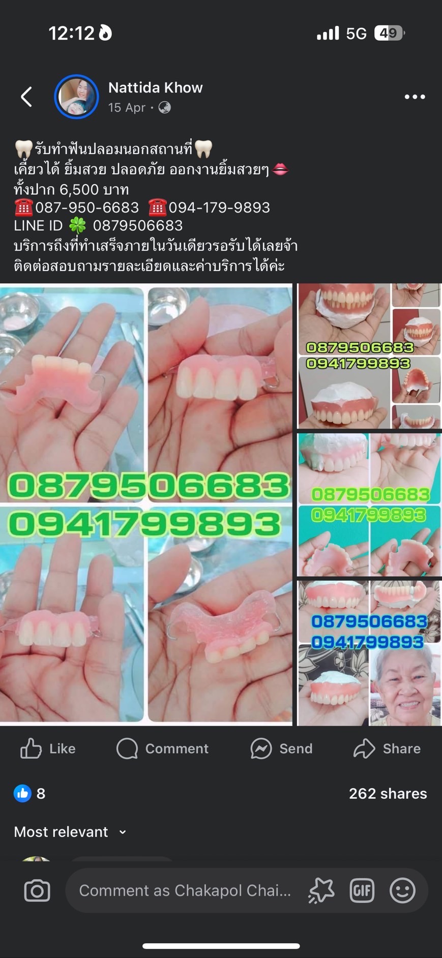 รับแจ้งจากทันตแพทย์รพ.ขุนหาญ มีผู้ป่วยไปทำฟันปลอมกับหมอเถื่อน(หมอกระ |