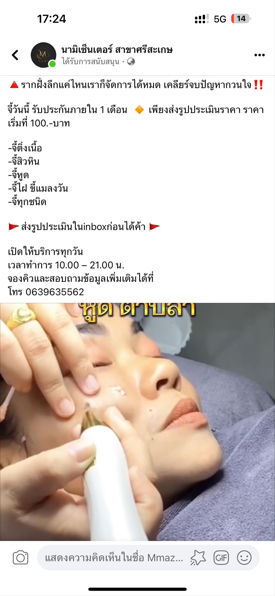 ป้าสมศรี เกิดผื่นขึ้นที่หลังไปนวด ร้านนวดผ่อนคลาย ในวันที่ 13 มี.ค.68โดยใ |