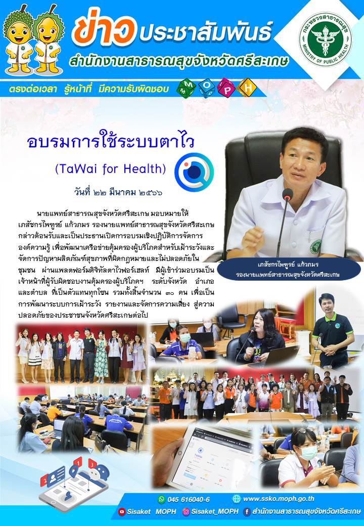อบรมเชิงปฏิบัติการจัดการองค์ความรู้ เพื่อพัฒนาเครือข่ายคุ้มครองผู้บริโภคสำหรับเฝ้าระวังและจัดการปัญหาผลิตภัณฑ์สุขภาพที่ผิดกฎหมายและไม่ปลอดภัยในชุมชน ผ่านแพลตฟอร์มดิจิทัลตาไวฟอร์เฮลท์