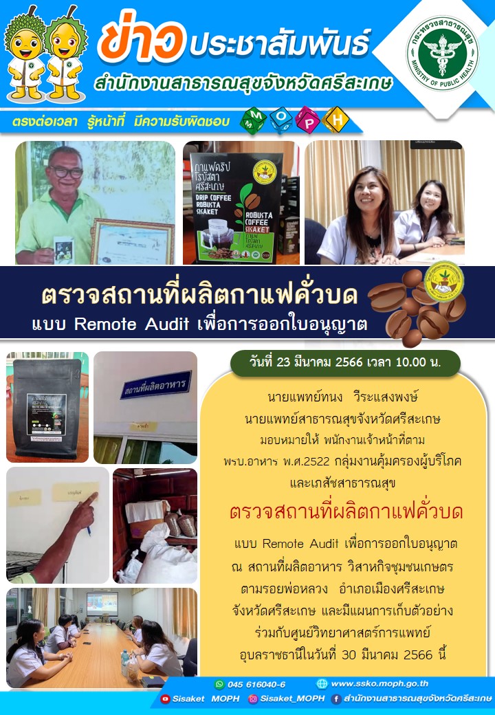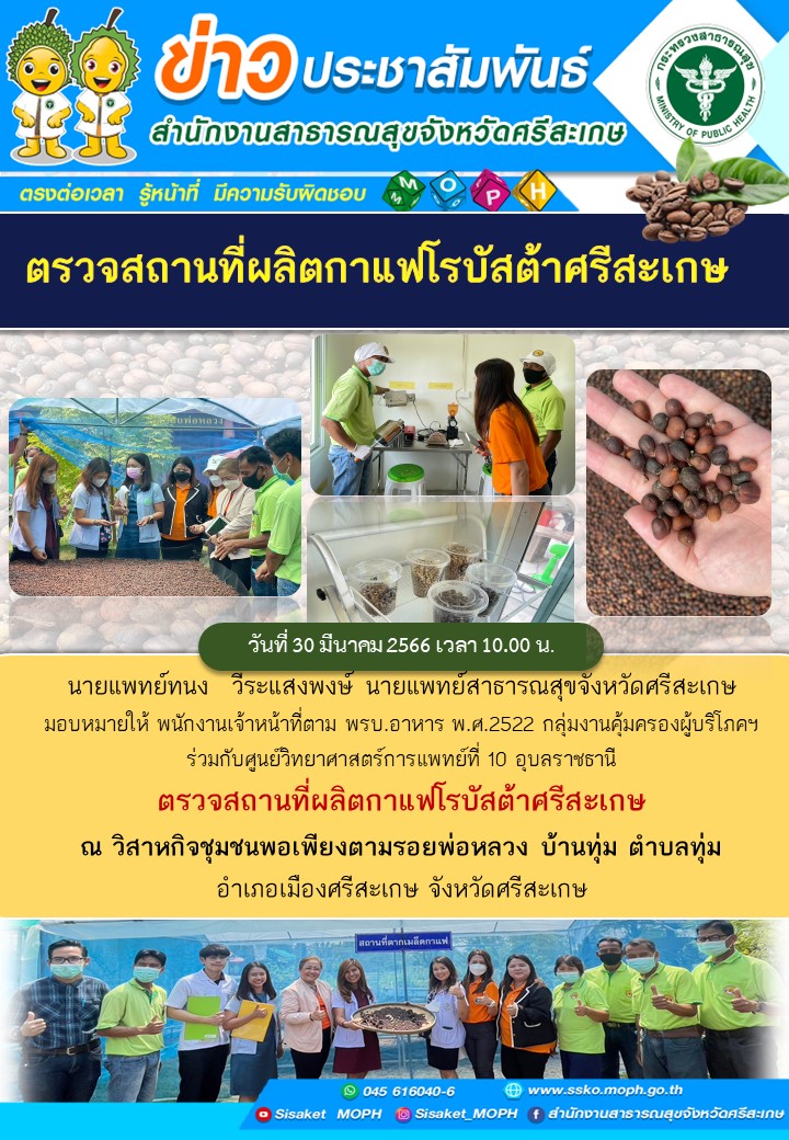 ตรวจสถานที่ผลิตกาแฟคั่วบดโรบัสตา ศรีสะเกษ (ROBUSTA SKAKET)
