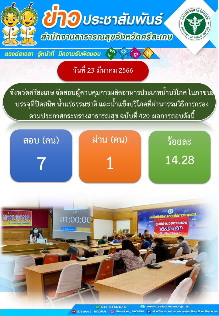 การจัดสอบผู้ควบคุมการผลิตอาหาร สำนักงานสาธารณสุขจังหวัดศรีสะเกษ  ประจำวันที่ 23 มีนาคม 2566