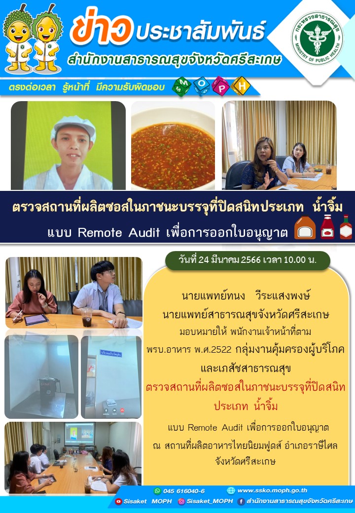 ตรวจสถานที่ผลิตซอสในภาชนะบรรจุที่ปิดสนิท ประเภทน้ำจิ้ม ด้วยวิธี Remote audit